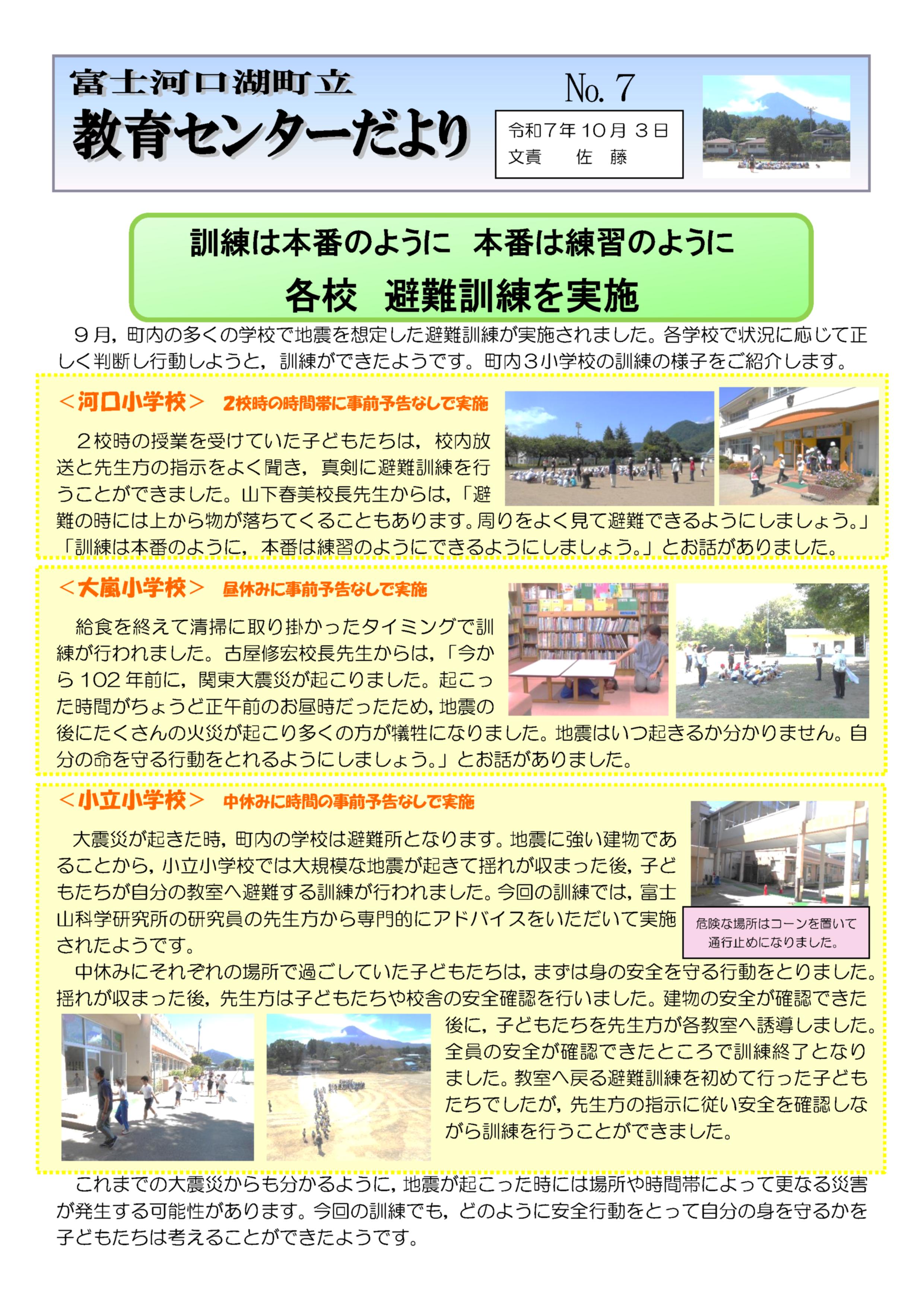 令和7年度の教育センターだよりは、こちらからご覧ください。