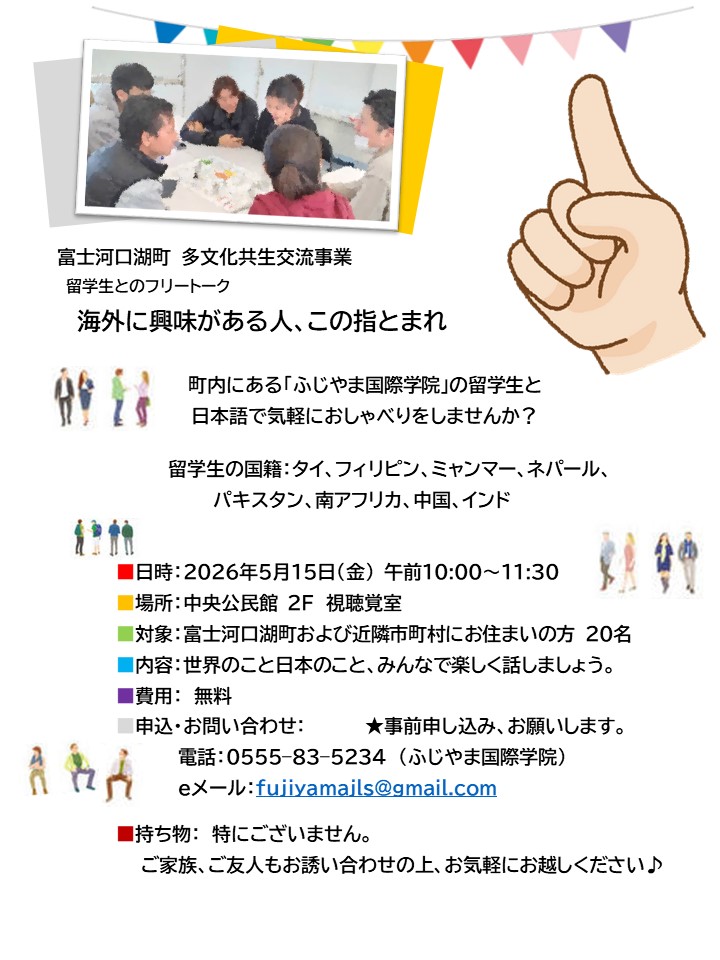 電話:0555–83–5234 (ふじやま国際学院)