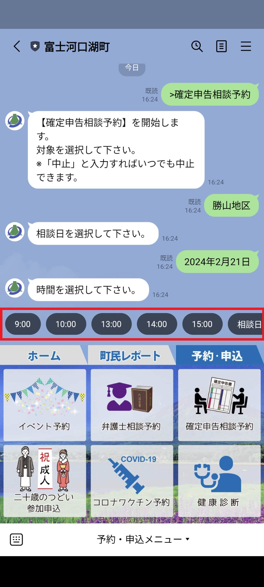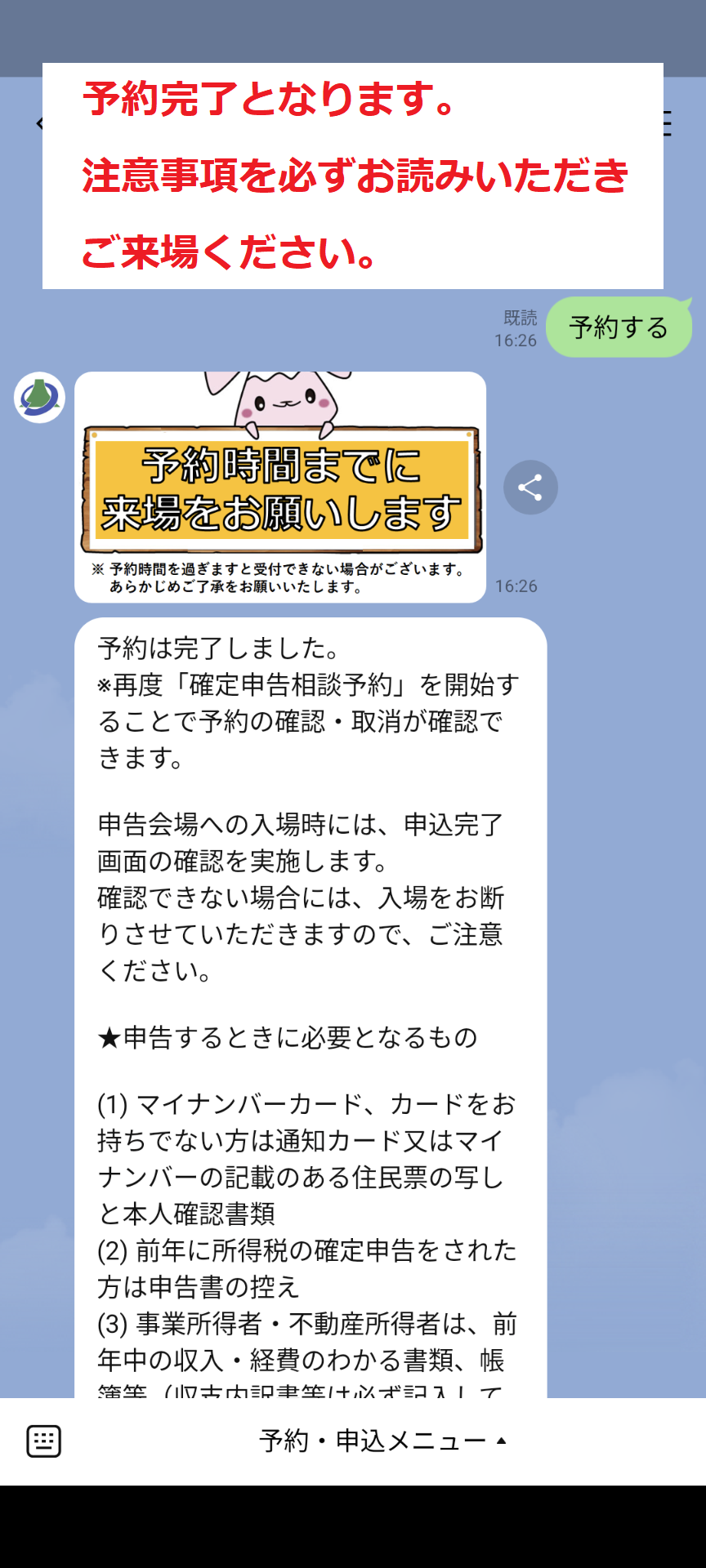 令和8年2月13日(金)以降予約が可能となります。なお、申告の前日までLINEで予約・キャンセルが可能です。