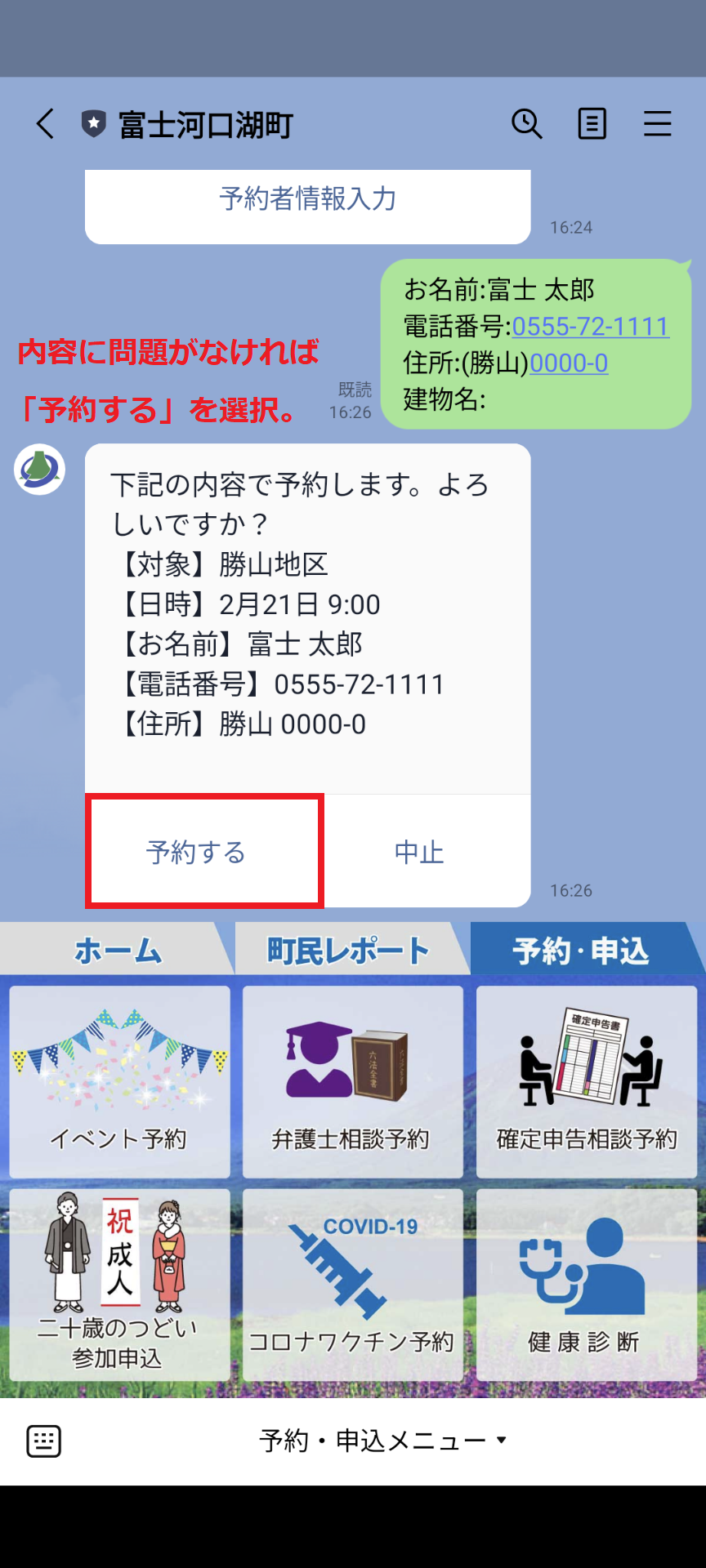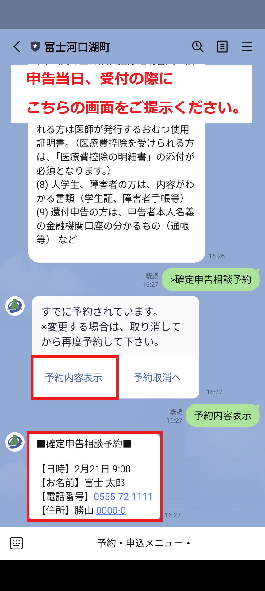 当日のキャンセルは税務課(0555-72-1113)まで直接ご連絡ください。