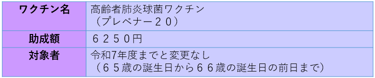 これまでに肺炎球菌ワクチンを一度でも接種したことがある方は助成対象外です。