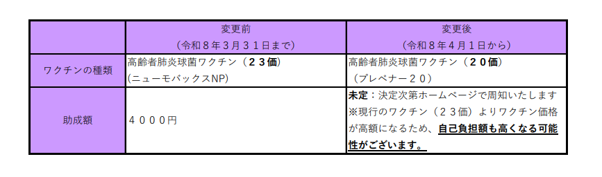 【令和8年3月更新:肺炎球菌ワクチンの制度変更について】